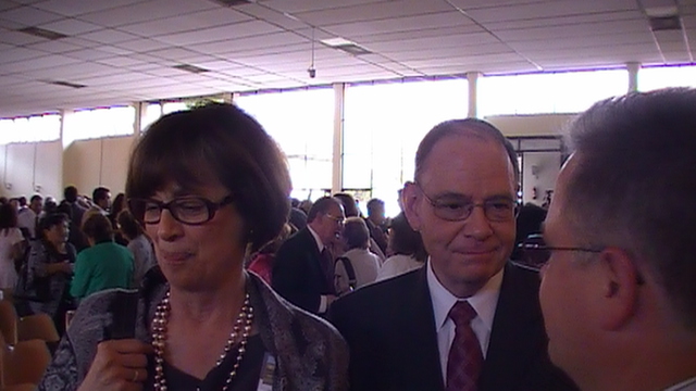 Osvaldo Soto-Aguilar (con la carpeta) y su esposa Rosario. Superintendente de Circuito.