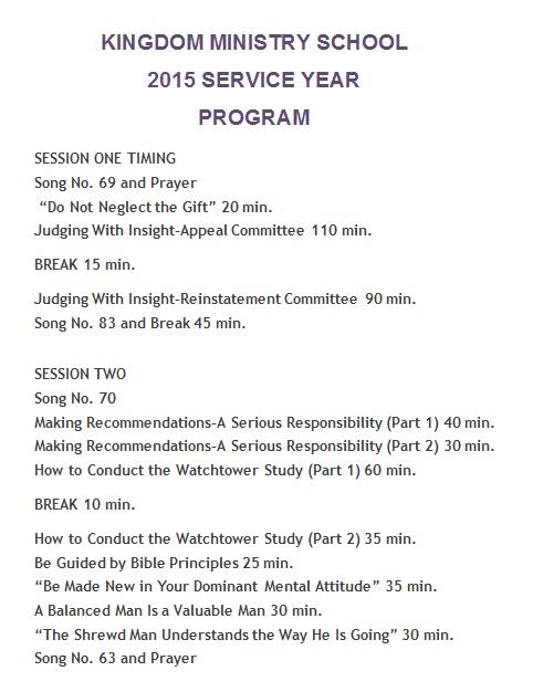 ResponderEliminarEscuela de Ancianos 2015: Actualización, Carta del 18 de Septiembre de 2014, "Kingdom Ministry School for the 2015 service year":